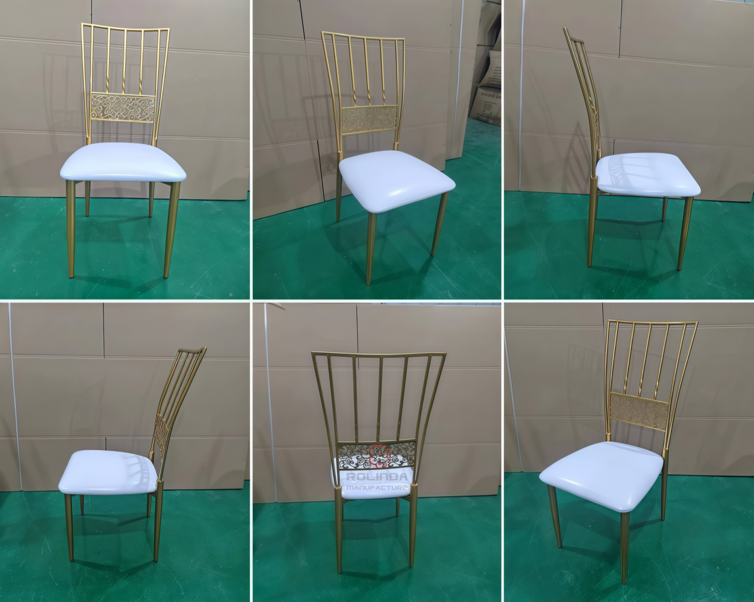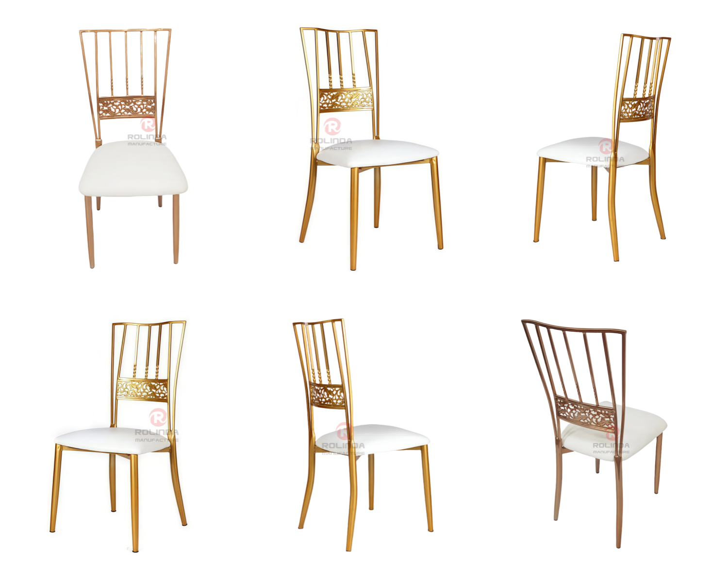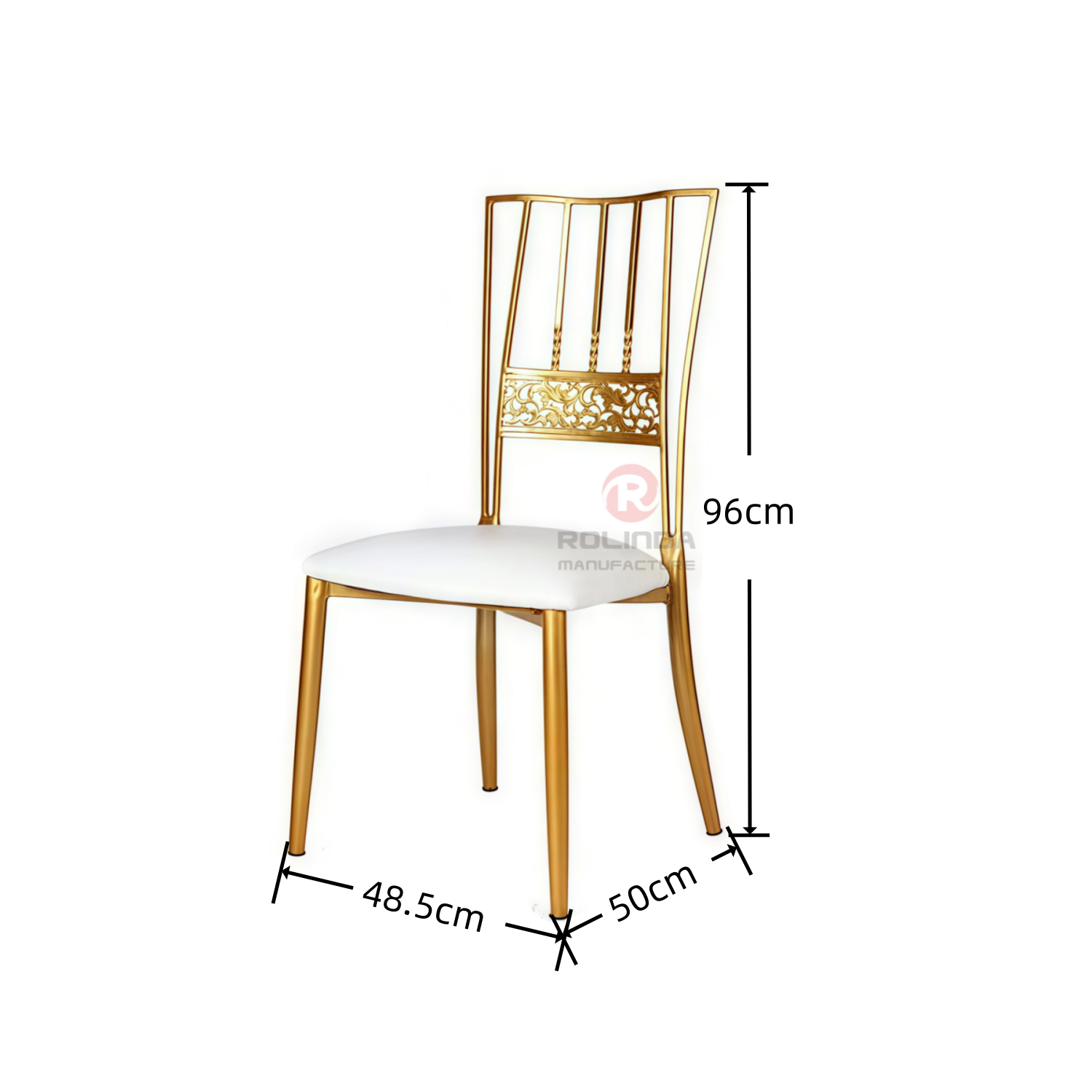 Modern Golden Hotel event soft cushions metal vertical striped patterned backrests iron chairs
