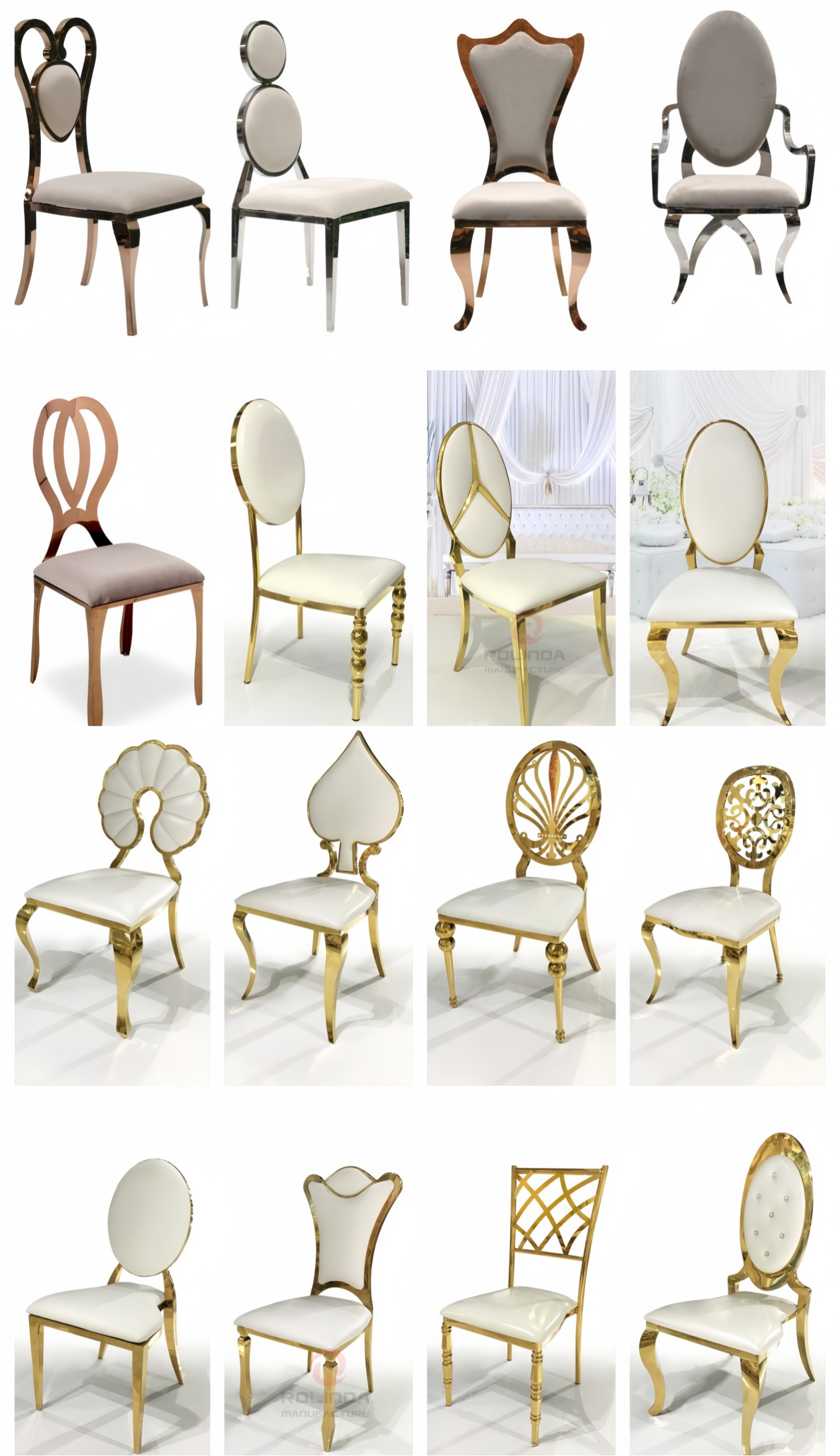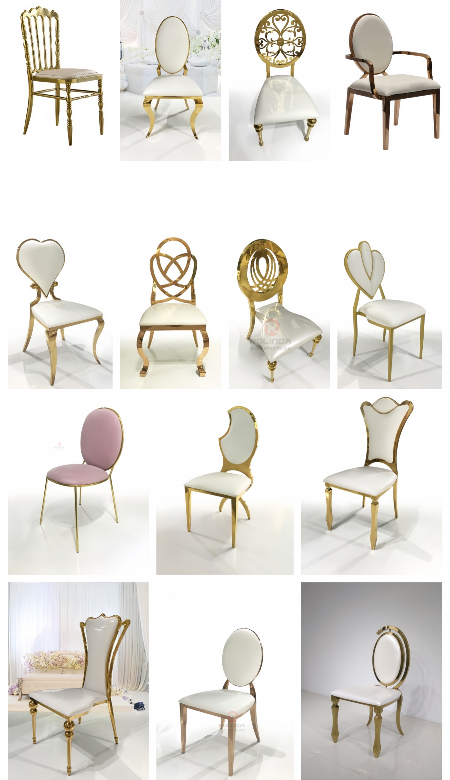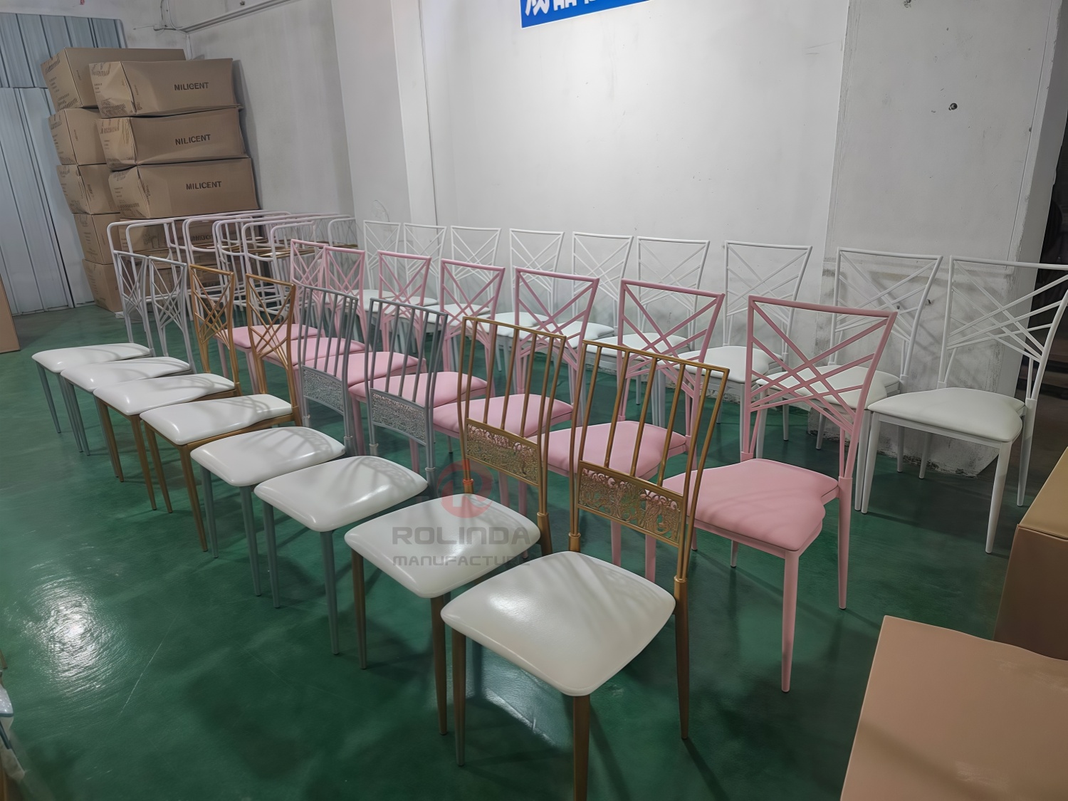 Modern Golden Hotel event soft cushions metal vertical striped patterned backrests iron chairs