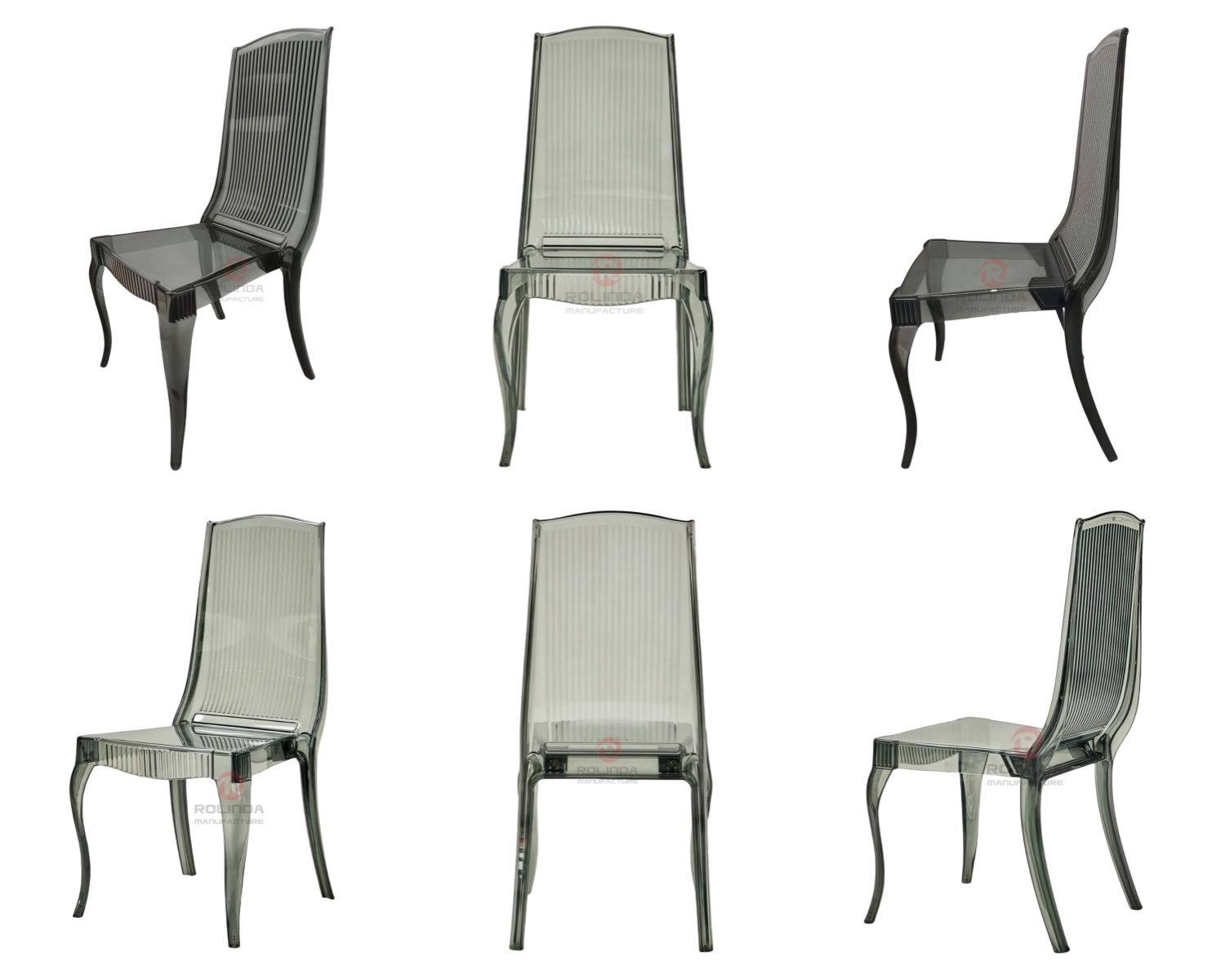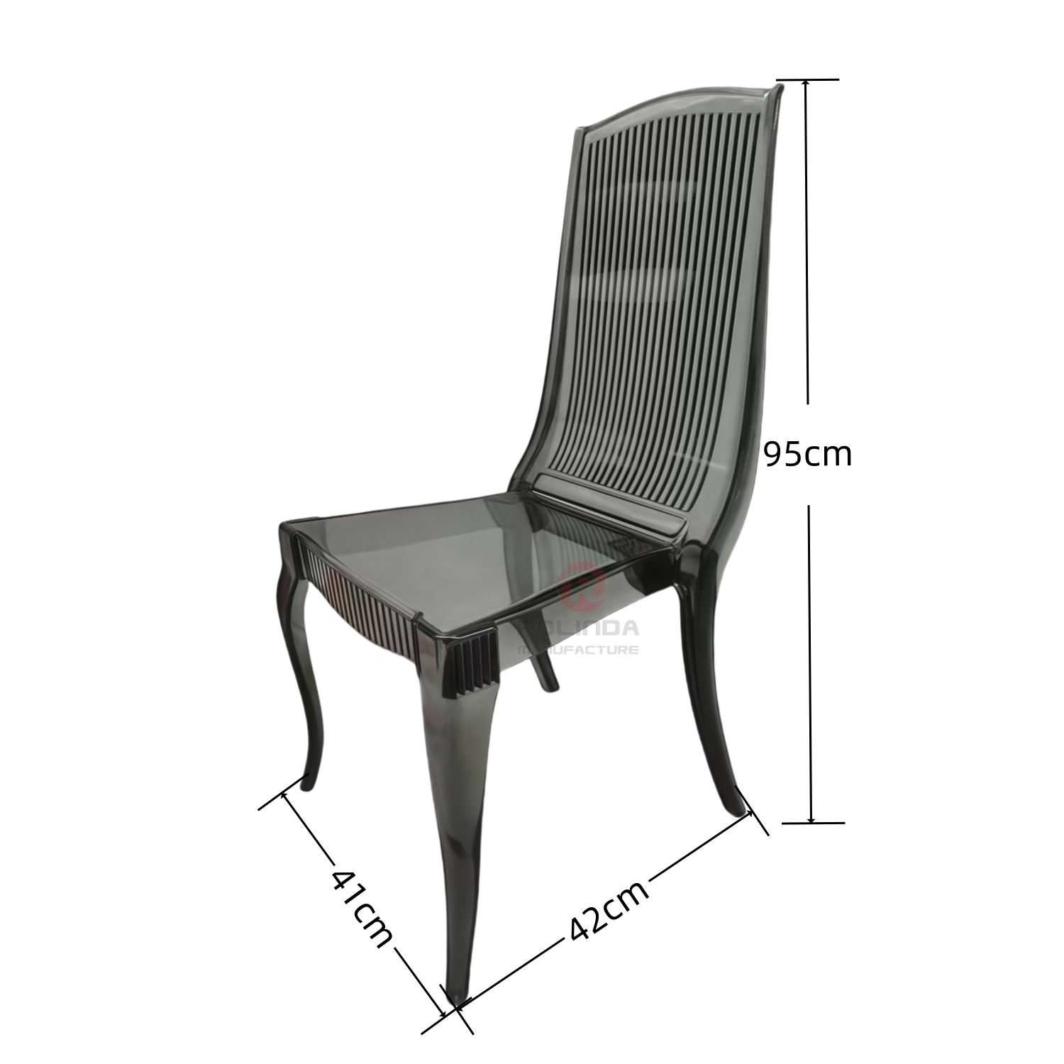 • Modern smoky grey transparent crystal vertical striped backrest resin chair