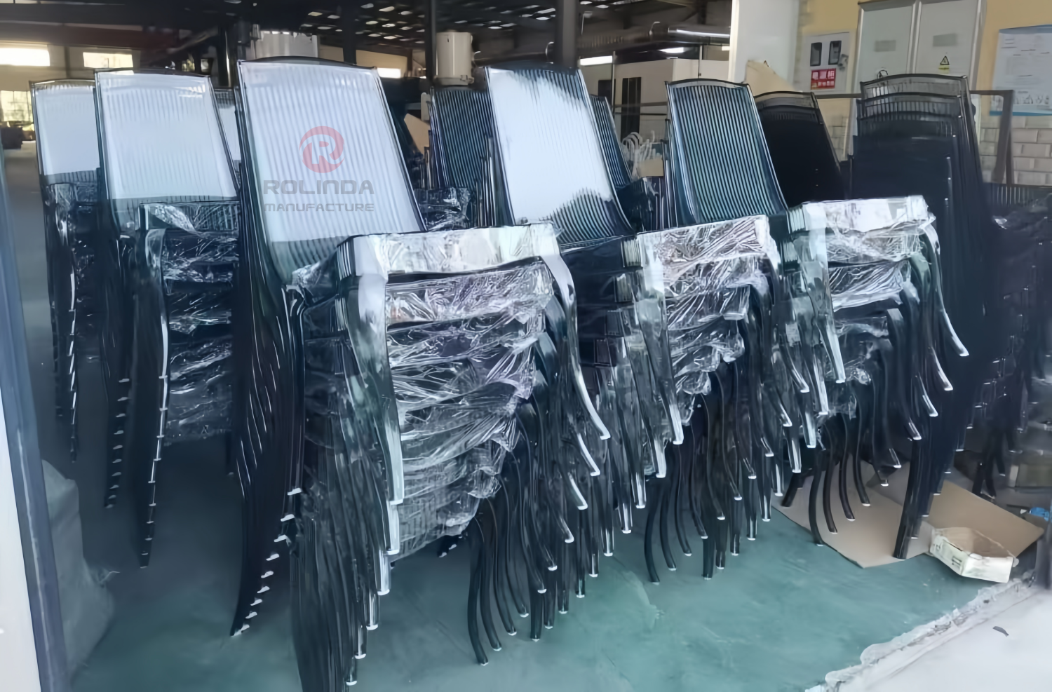 • Aesthetic Design: The backrest features vertical lines, creating a rhythmic and see-through look. The seat is flat or slightly curved, contrasting with the backrest and adding visual layers.