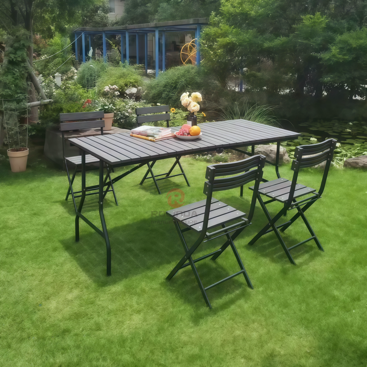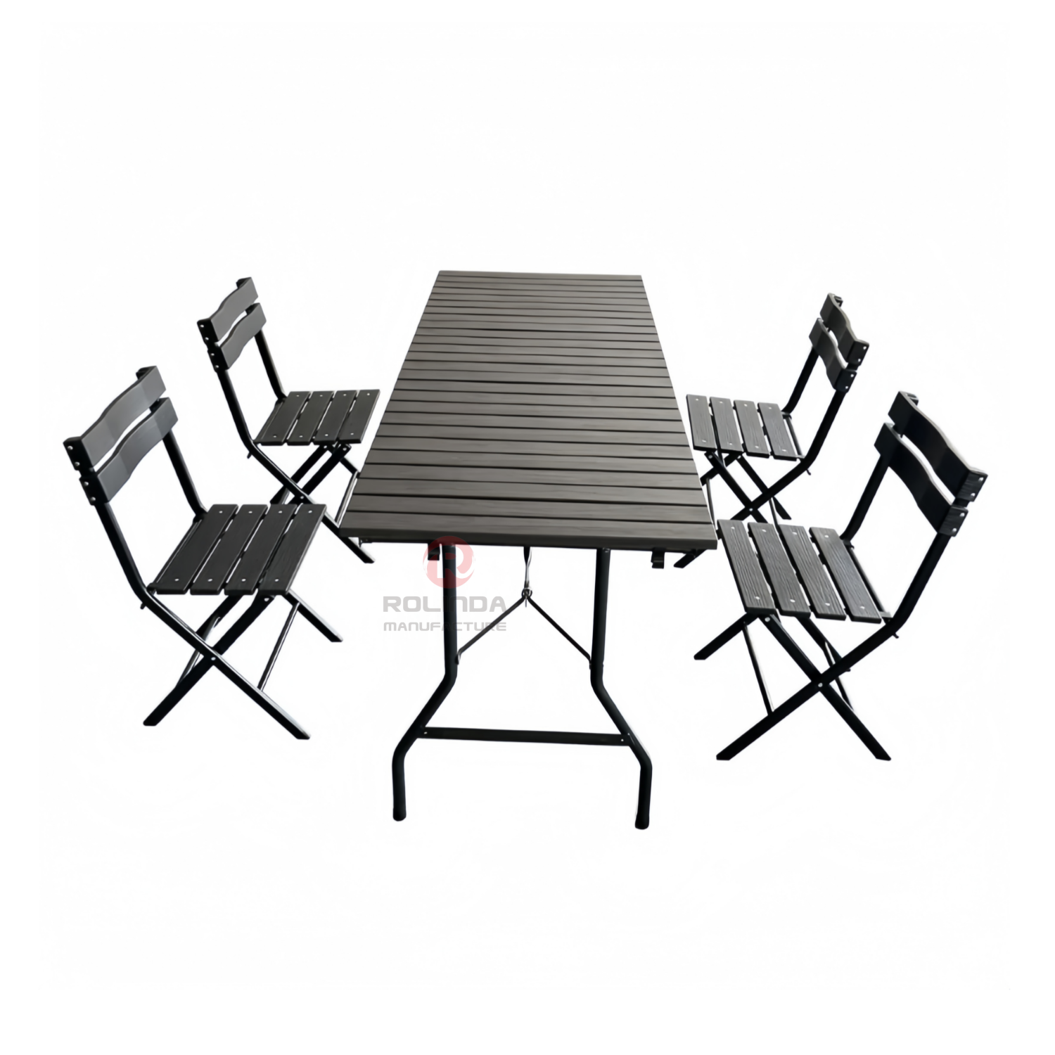 Powder-Coated Steel Frame: Steel tubes with rust/scratch-resistant coating endure rain, humidity, and outdoor wear. Welded joints reinforce stability, so the table won’t wobble during meals or use.