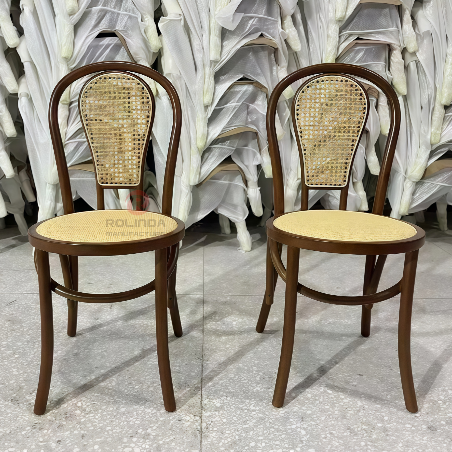 PP wood grain and wood color spray paint double N woven backrest thonet chair