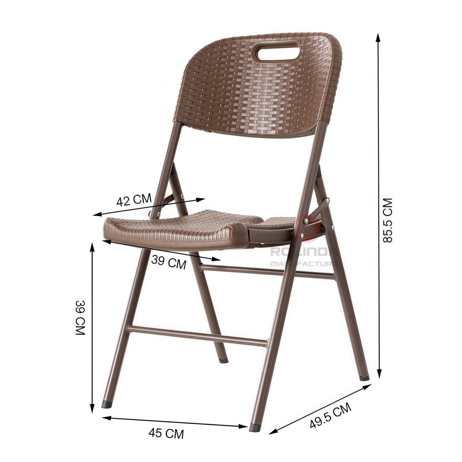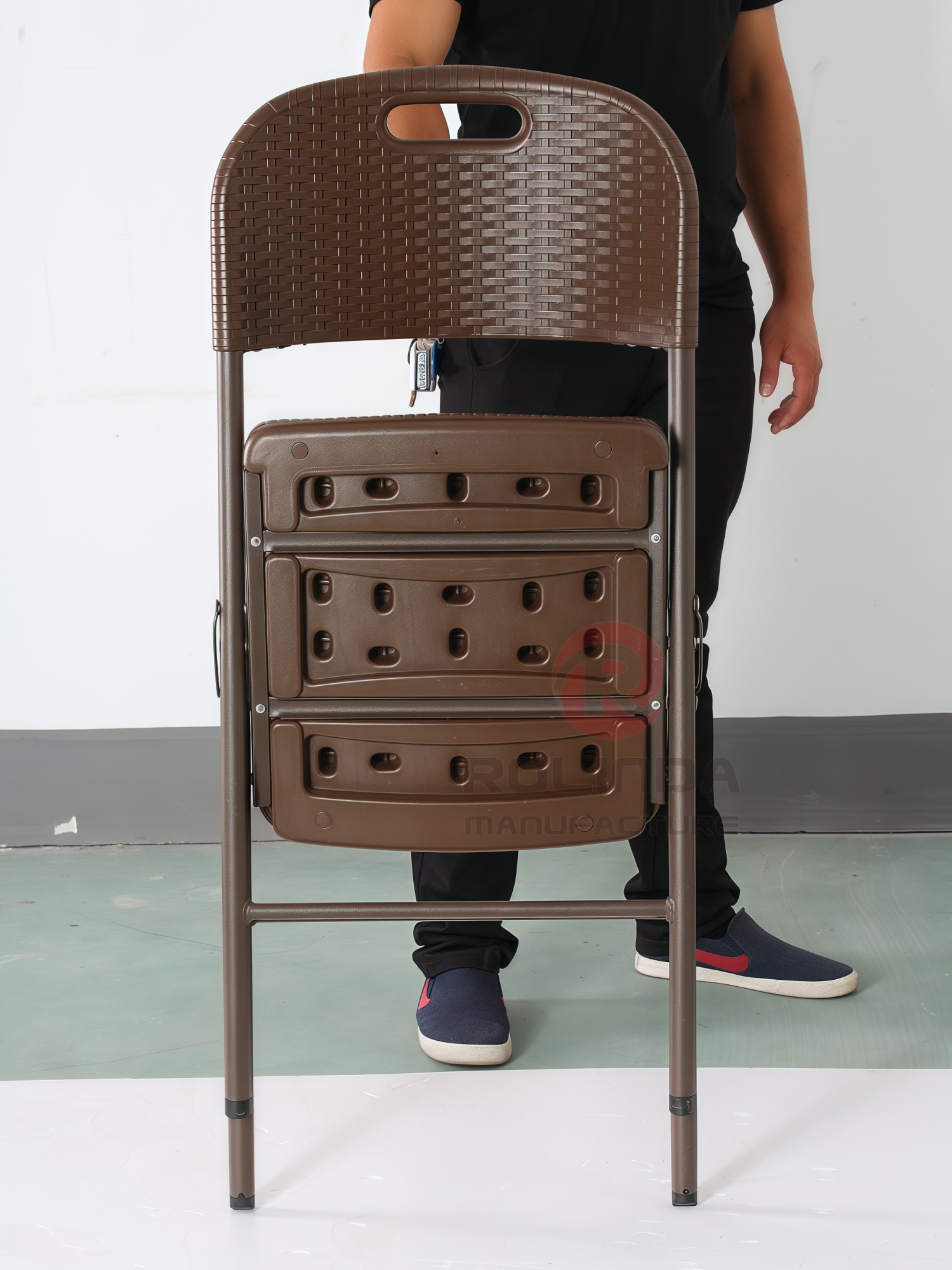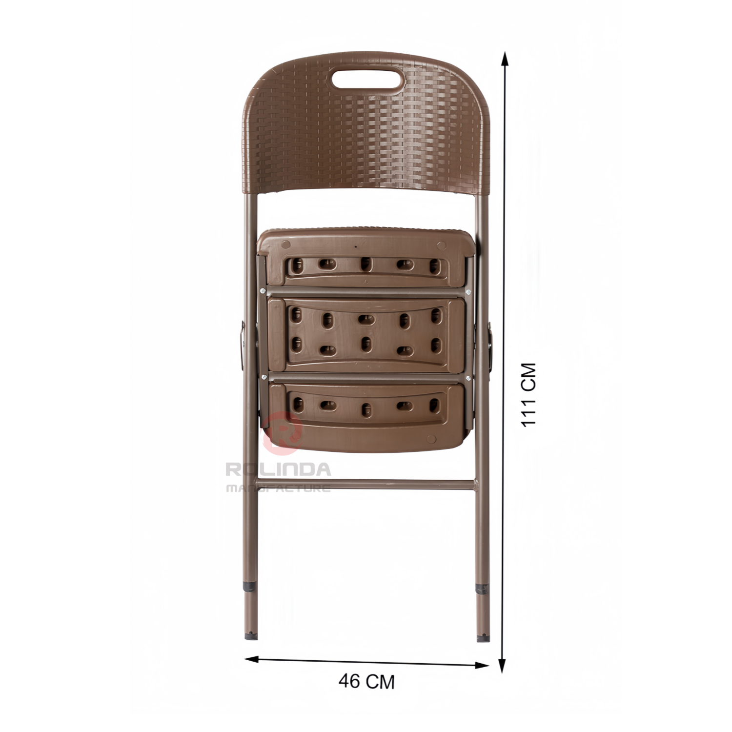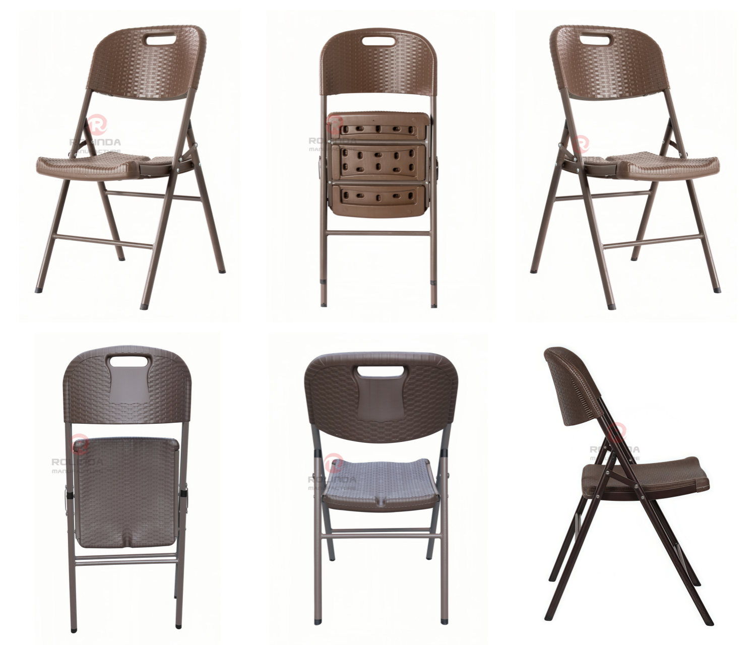 Rattan-Style Folding Chair: 4.5cm HDPE Panel & 25mm Steel Frame This rattan-style folding chair combines a 4.5cm thick HDPE plastic panel (with woven rattan texture) and a 25×1.0mm powder-coated steel frame. It’s durable, foldable, and perfect for indoor/outdoor leisure—ideal for patios, camping, or extra seating.