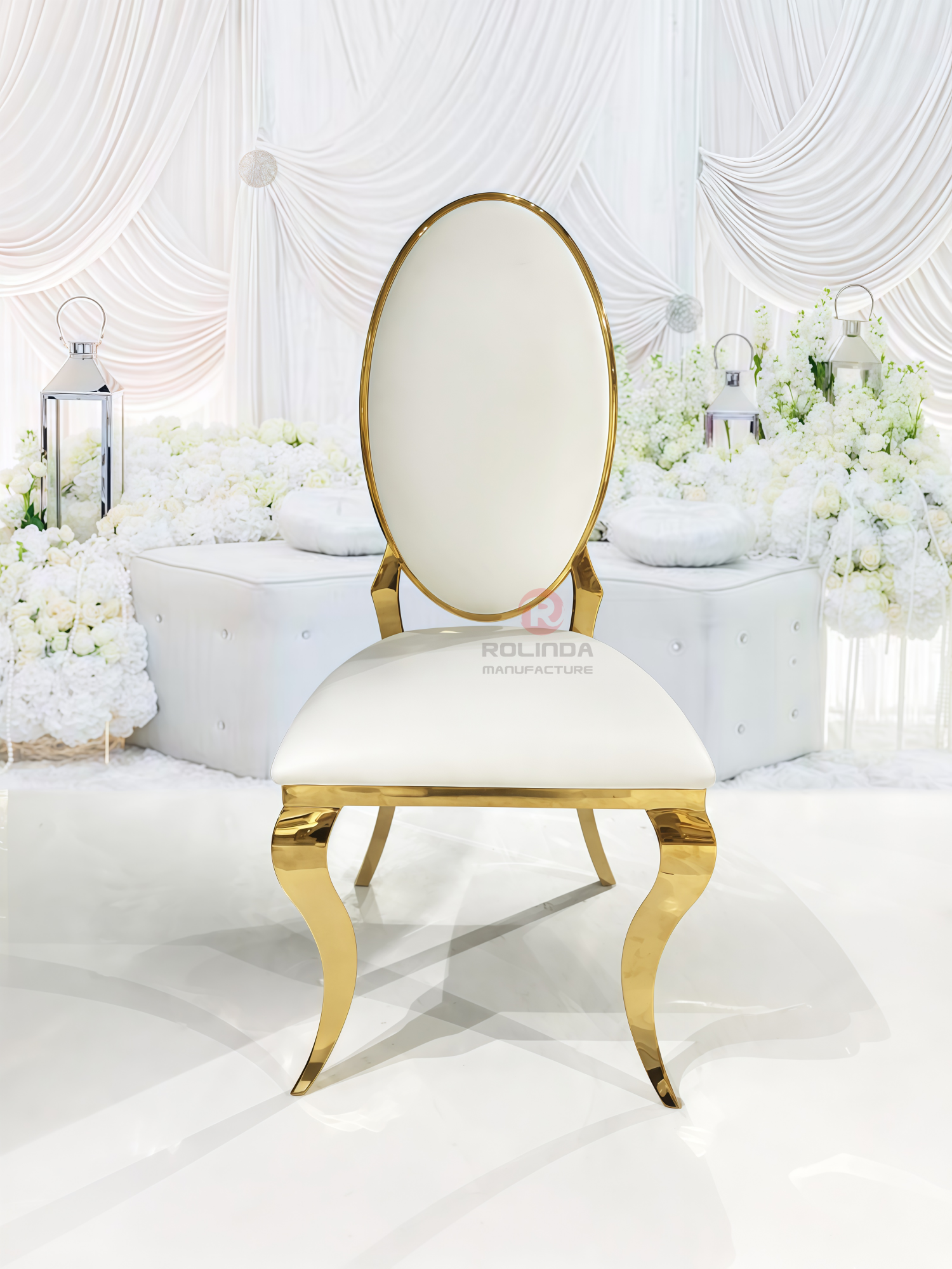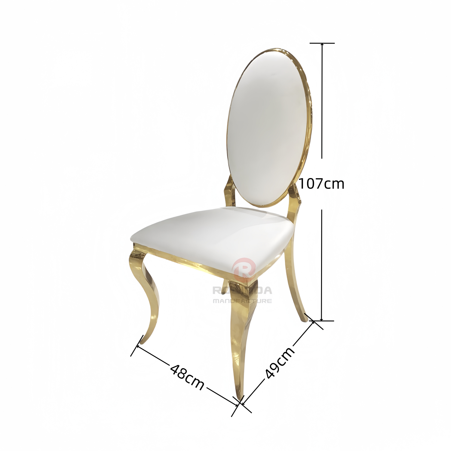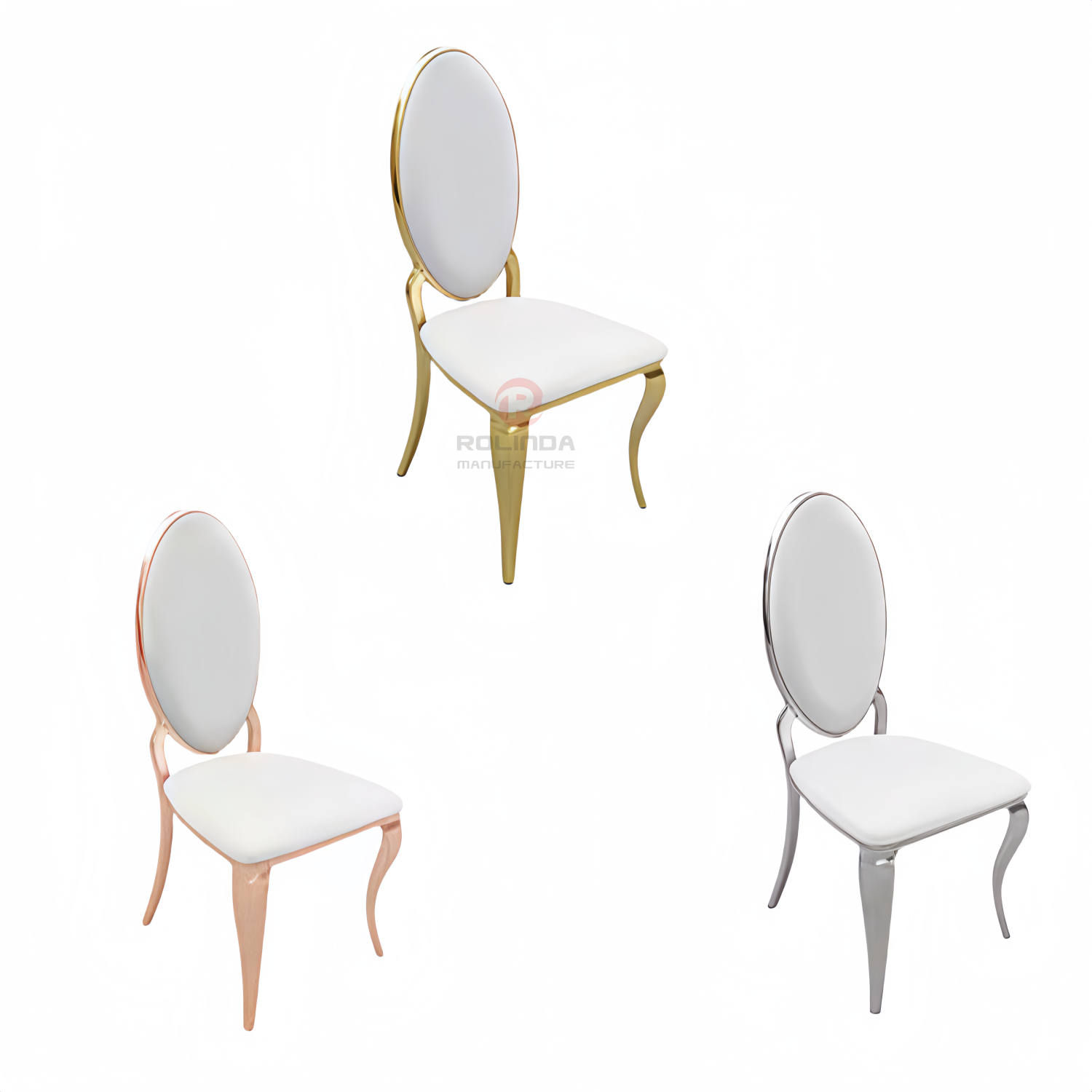 Royal high oval white PU back Hotel Restaurant Banquet stainless steel chairs