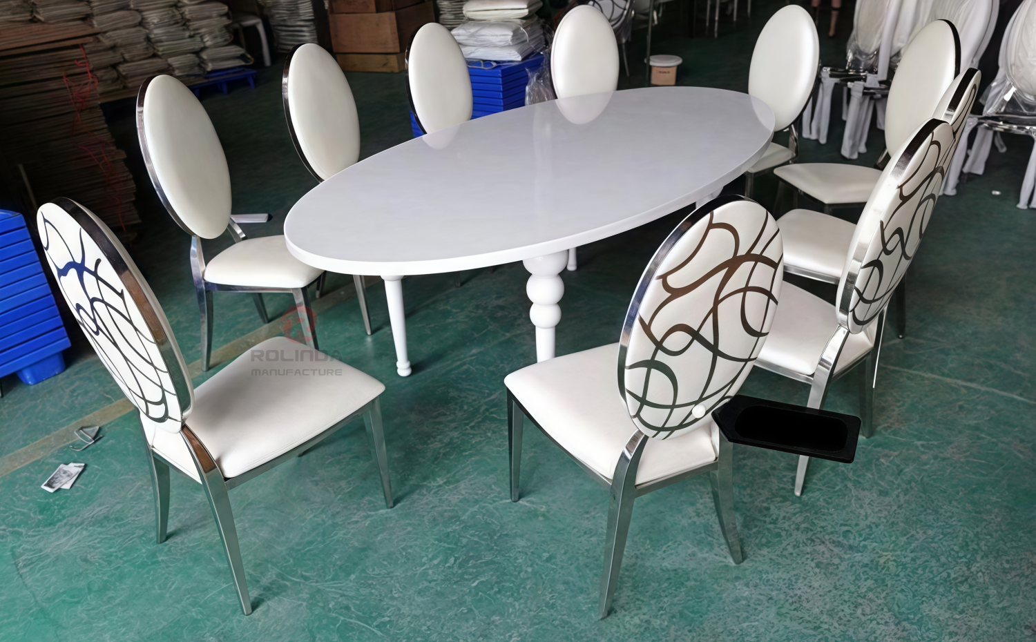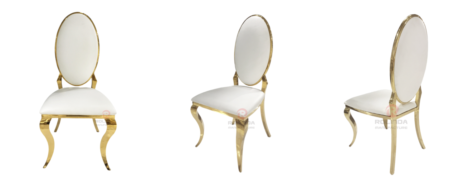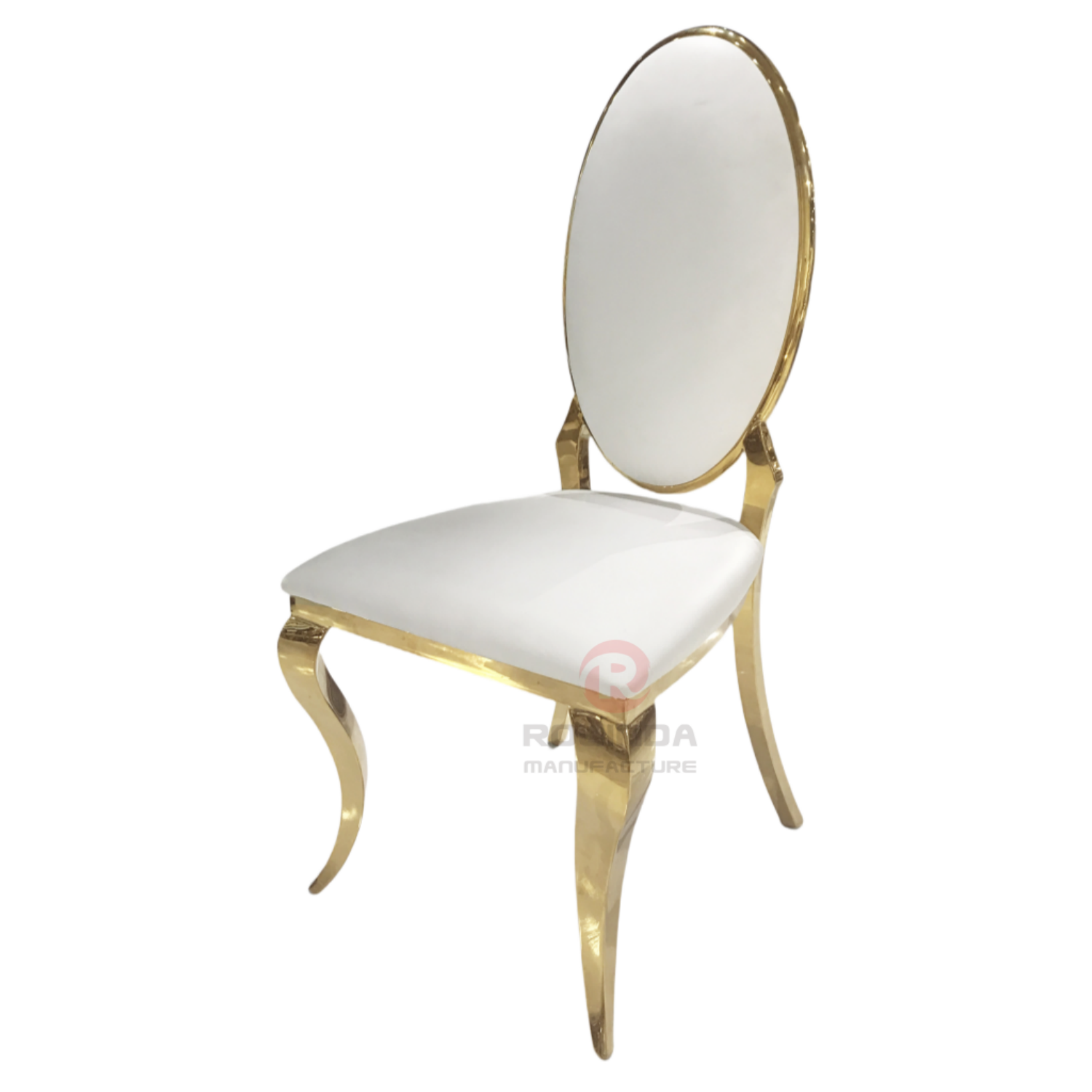 Royal high oval white PU back Hotel Restaurant Banquet stainless steel chairs