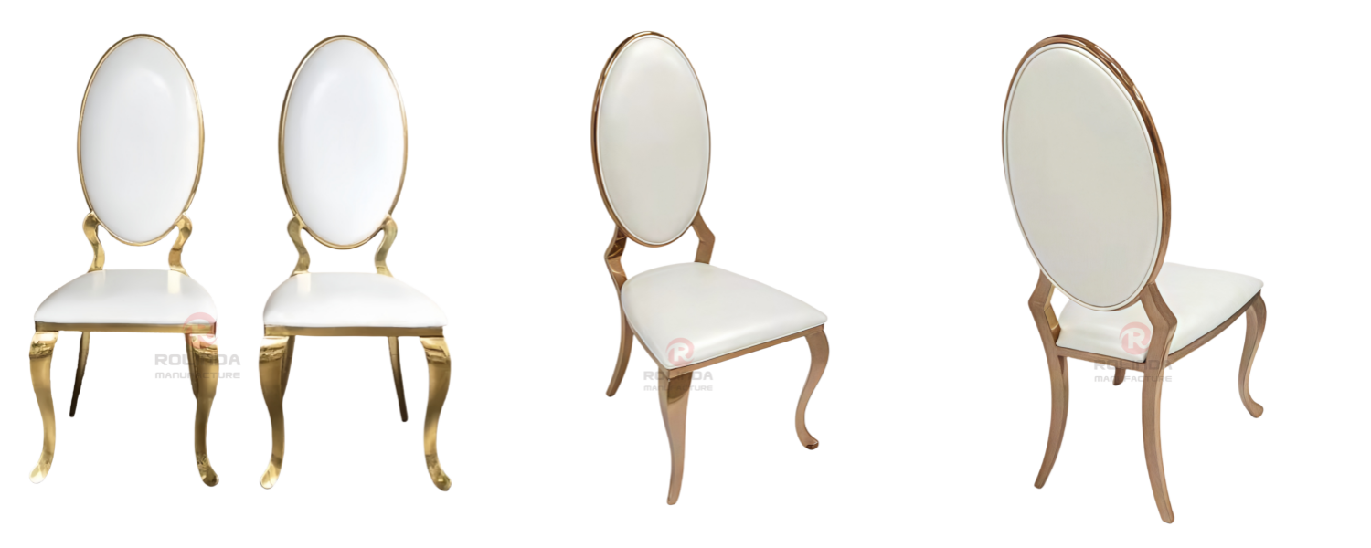 • Royal high oval white PU back Hotel Restaurant Banquet stainless steel chairs