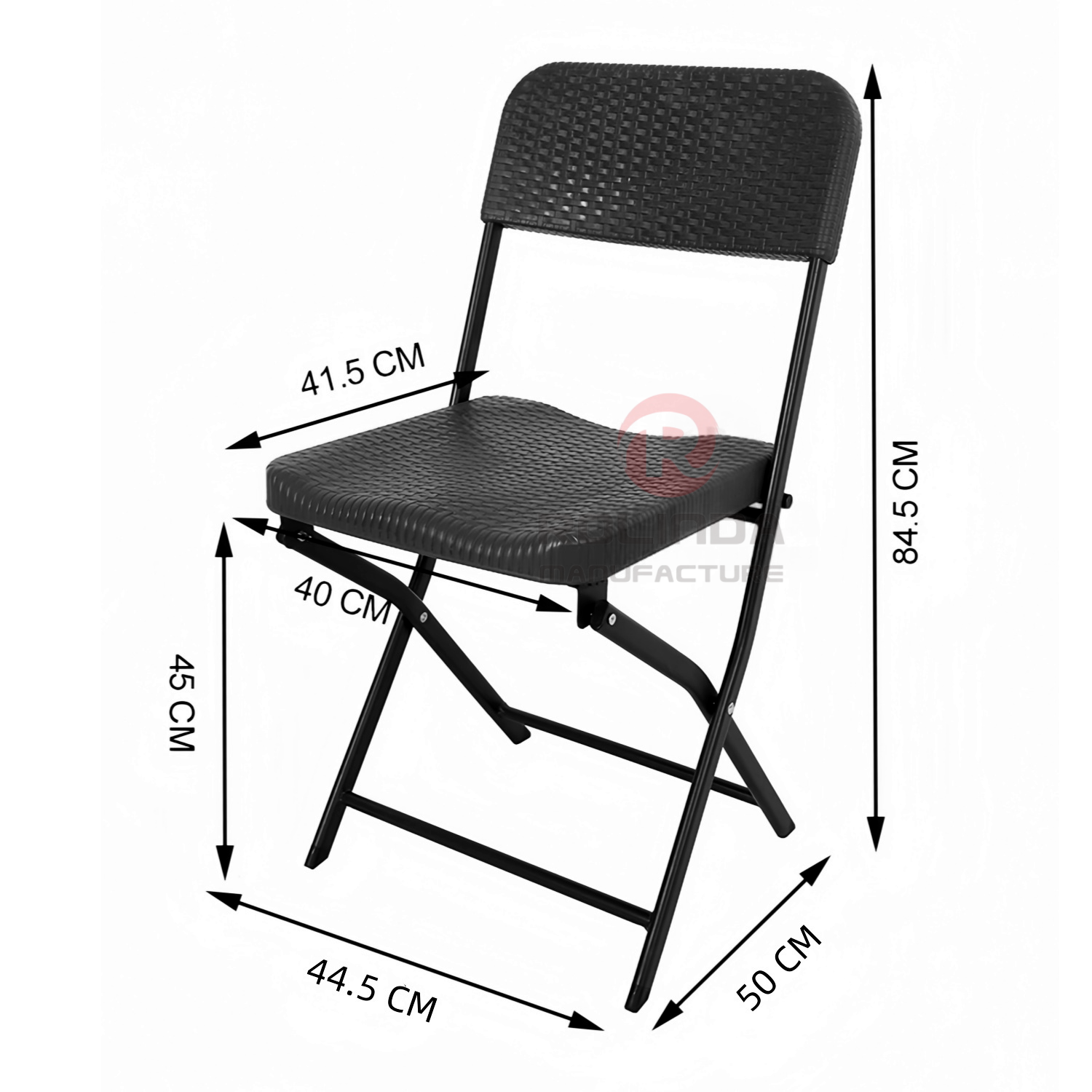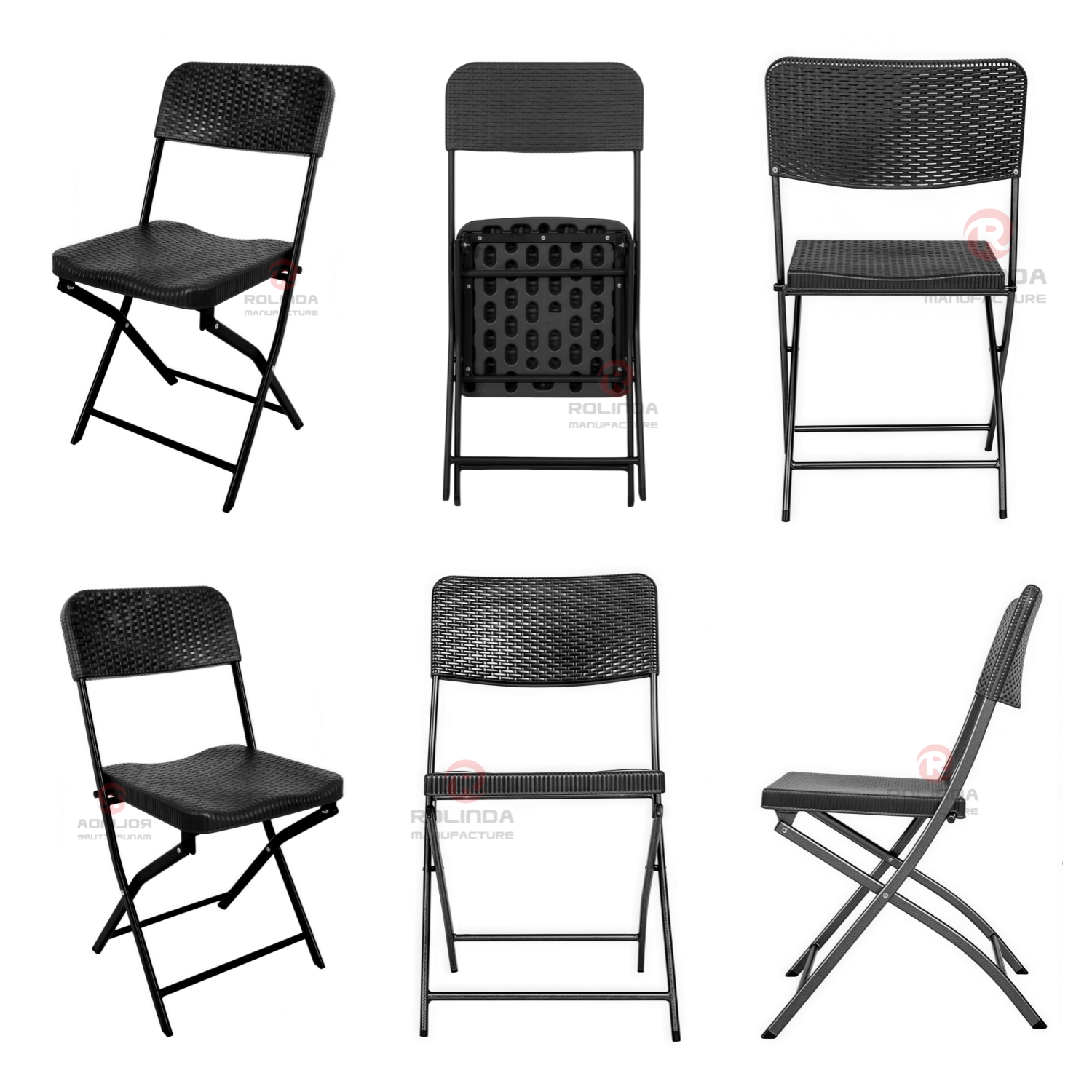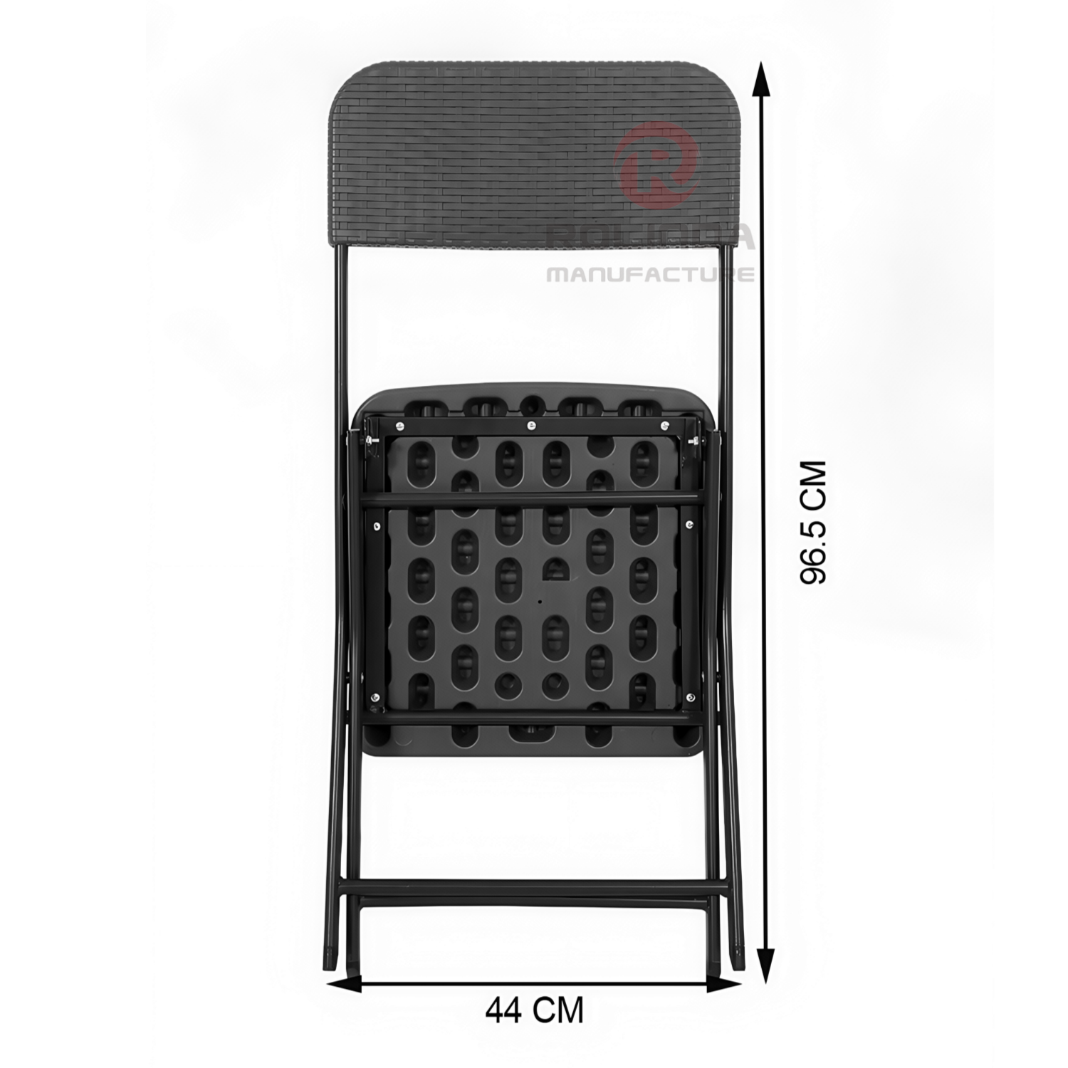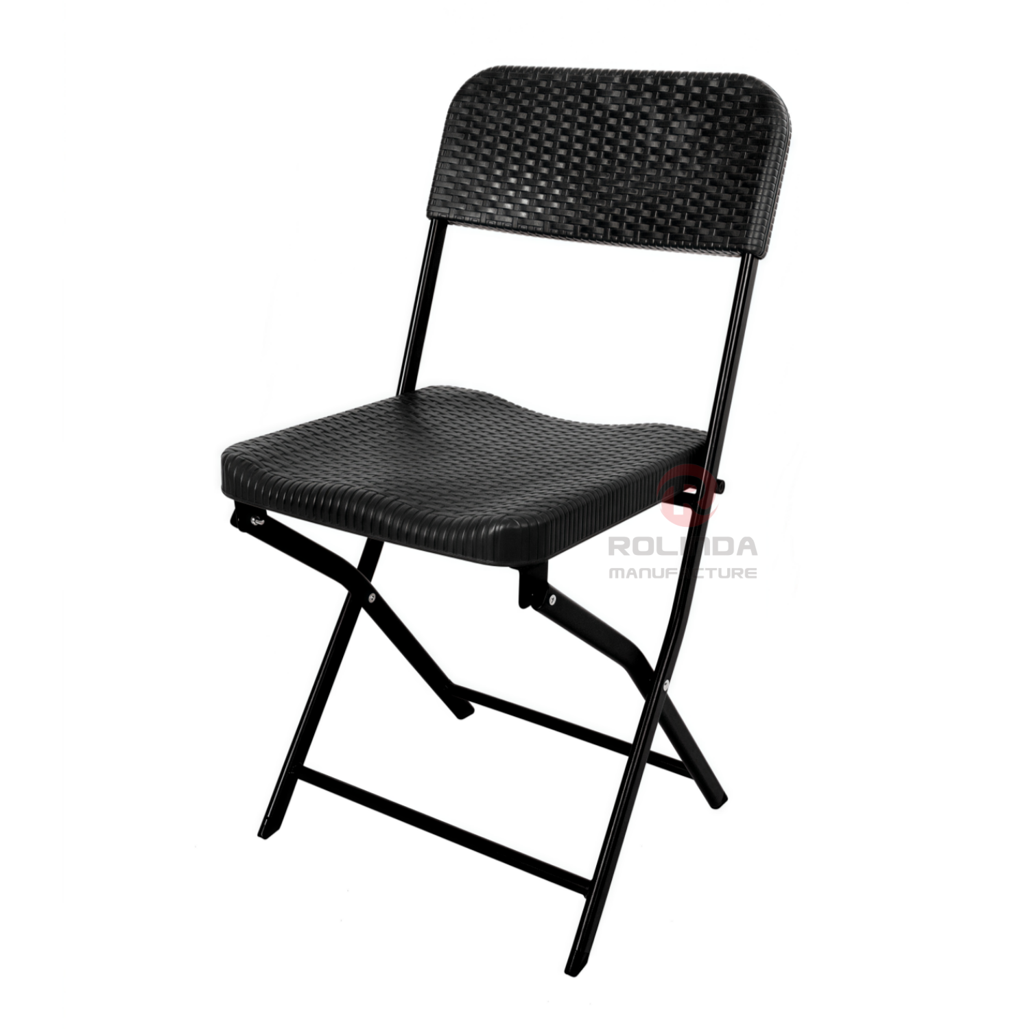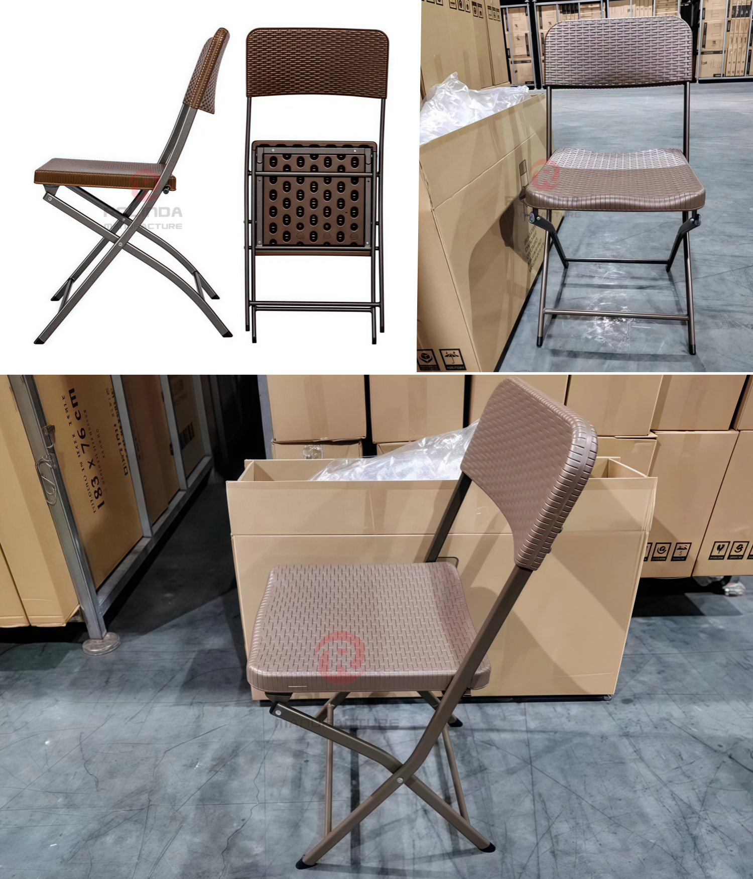 Rattan HDPE Folding Chair: Thick Panel, Sturdy Steel Frame & Space-Saving Design This rattan-style folding chair features a 4cm thick HDPE plastic panel (mimicking rattan texture) and a 14×28mm powder-coated steel frame. Blending rustic rattan charm with durability, it’s foldable for easy storage—ideal for patios, camping, or home leisure.